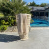 De Hamamdoek Plaj Beige heeft een prachtig weefdessin wat deze hamamdoek zo bijzonder maakt. Deze Hamamdoek heeft een zigzag weefpatroon. Aan de uiteinde heeft deze Hamamdoek lichte strepen. Ze zijn geproduceerd van 100% katoen. Ga je op vakantie dan mag een Hamamdoek Plaj in de kleur Beige zeker niet ontbreken in je koffer. Ook voor naar de sauna, het strand of een dagje uit is een hamamdoek ideaal. Deze hamamdoek is zeer licht (460 gr) en heel klein op te vouwen, dus ideaal als je niet zo veel plek hebt in je koffer of rugzak. De fringes (kwastjes) worden door vrouwen met de hand gedraaid en geknoopt. Een echte Turkse ambacht waar men zeer trots op is. Kleur en gewicht kunnen verschillen en kleine weeffoutjes horen bij dit ambachtelijk product. Dit doet zeer zeker niet af aan de kwaliteit van deze kwalitatieve hamamdoek. De Hamamdoek Plaj is in verschillende mooie kleuren verkrijgbaar.