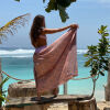 Een pareo of omslagdoek is de uitkomst om deze over je bikini om te toveren tot een leuke jurk.