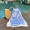 Deze Hamamdoek met motief Bohemia Blue van het mooie merk Fashion4Wellness is van 100% katoen. Het combineert tijdloze stijl met katoen van de hoogste kwaliteit. Deze Hamamdoek met ingeweven motief voelt heerlijk zacht aan. De Hamamdoek Bohemia Blue is perfect om mee te nemen voor op reis, naar het strand, te dragen als pareo of om op te liggen. Deze Hamamdoek Bohemia is absoluut een aanrader voor deze zomer.