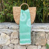 Deze Hamamdoek met motief Bohemia Green van het mooie merk Fashion4Wellness is van 100% katoen. Het combineert tijdloze stijl met katoen van de hoogste kwaliteit. Deze Hamamdoek met ingeweven motief voelt heerlijk zacht aan. De Hamamdoek Bohemia Green is perfect om mee te nemen voor op reis, naar het strand, te dragen als pareo of om op te liggen. Deze Hamamdoek Bohemia is absoluut een aanrader voor deze zomer.