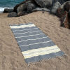 De hamamdoek Sea Me black lemon heeft een prachtig weefdessin met strepen wat deze hamamdoek zo bijzonder maakt. Deze chique fairtrade hamamdoek heeft strepen en is in verschillende kleuren strepen verkrijgbaar. Ze zijn geproduceerd van 100% biologisch katoen. De fringes (kwastjes) worden door vrouwen met de hand gedraaid en geknoopt. Een echte Turkse ambacht waar men zeer trots op is. Kleur en gewicht kunnen verschillen en kleine weeffoutjes horen bij dit ambachtelijk product. Dit doet zeer zeker niet af aan de kwaliteit van deze kwalitatieve hamamdoek. De hamamdoek Sea Me heeft het formaat 95 x 200 cm.